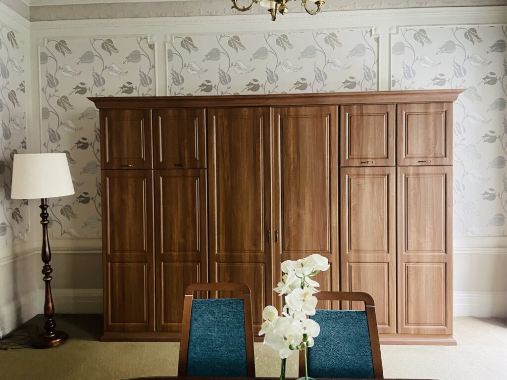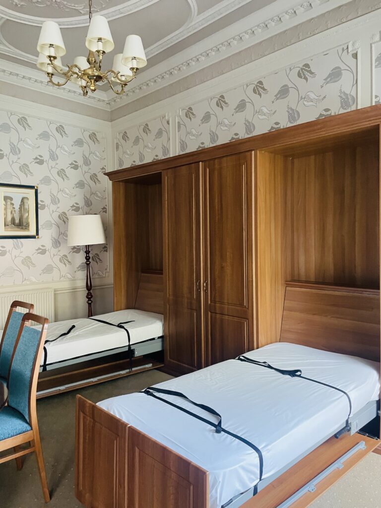 At first, I was puzzled by the huge wardrobe, thinking our kids would have separate beds elsewhere. To my surprise, it was a fold-out bed hidden inside—an ingenious use of space! Pillows and bedding were neatly stored in a nearby cabinet, and the children were thrilled by the novelty.