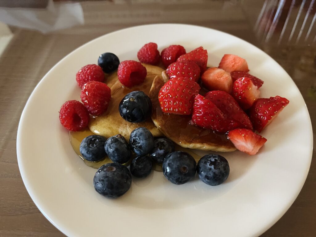 No matter when I go to sleep, my body seems to wake automatically at 6 a.m. — so, unsurprisingly, today I was up just as the city stirred. The kids, as always, were content with croissants for breakfast. I popped into a local shop and found freshly baked ones, rushed back to our lodging, and topped them with blueberries and strawberries I’d grabbed. A drizzle of maple syrup, and breakfast was done! After all, if we’re going to explore Edinburgh today, we’ve got to start with full bellies.