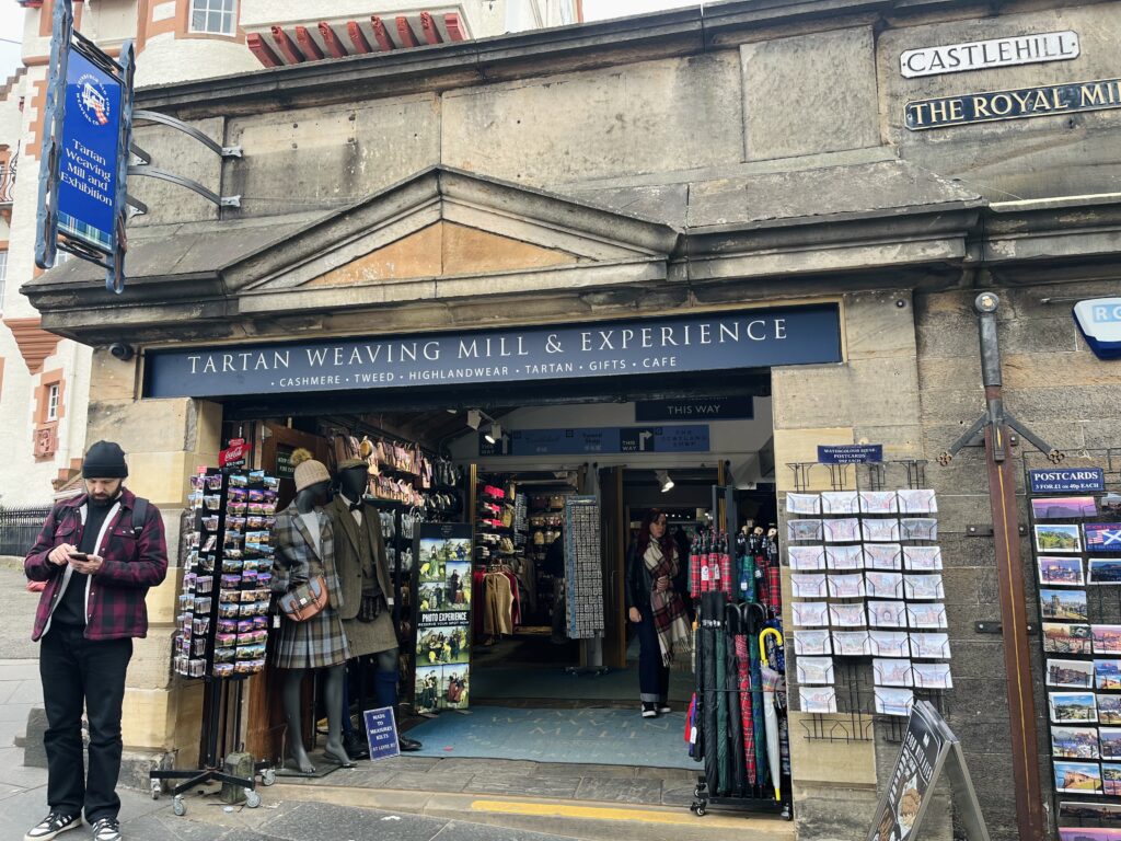 Then we wandered into the Tartan Weaving Mill & Experience on Castlehill near the Royal Mile. The place isn’t just a souvenir shop — you can watch looms turn, see tartan being woven live, and explore a broad collection of woollen goods and kilts. It’s educational, atmospheric, and still playful — perfect for curious travellers.