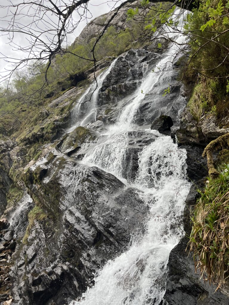 Follow the eastern valley along Glen Nevis, and suddenly, like a scene straight out of a movie, a waterfall bursts into view: the breathtaking Steall Waterfall. As we hiked along the forested trail, my heart kept skipping. It felt like walking through Middle-earth itself.